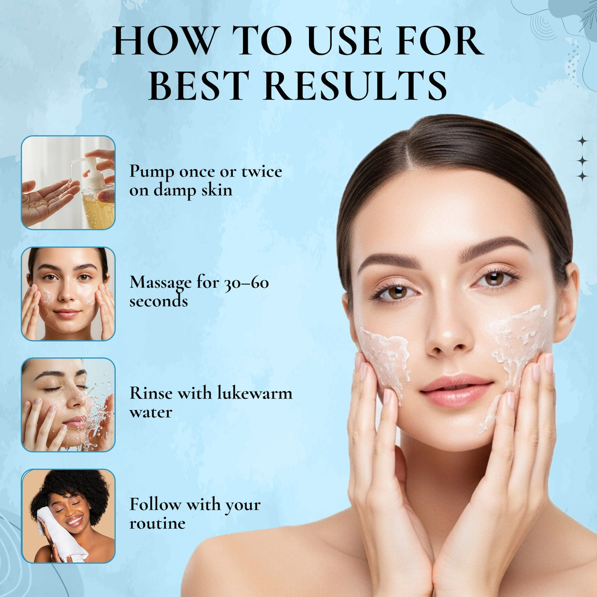 Massage Face Scrub Cleanser onto damp skin. Rinse & pat dry.